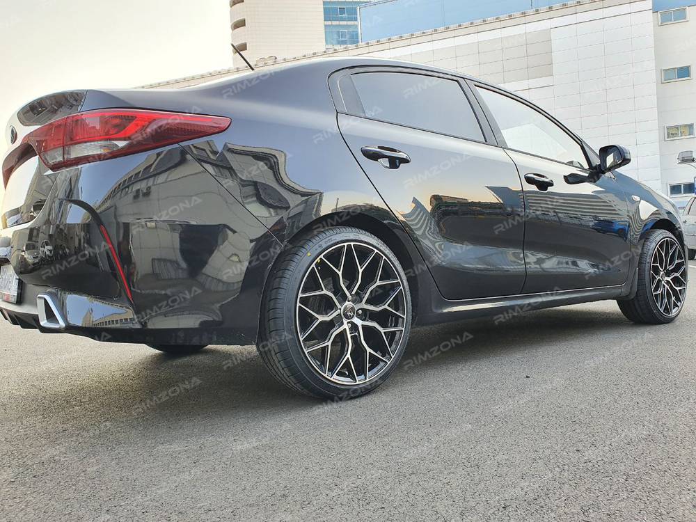 Изначально клиент хотел купить литые диски и шины на киа рио 16 диаметре. После визуальной примерки дисков, решение было изменено и теперь литые диски и шины на kia rio идут в 18-ом диаметре и в двойном цвете - черный полумат с алмазной полировкой спиц. На наш взгляд это лучшее сочетание цветов для данного цвета кузова авто.